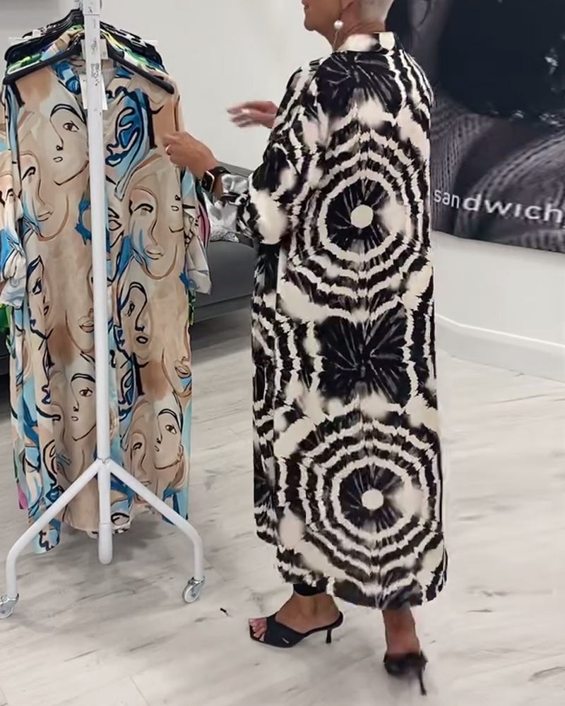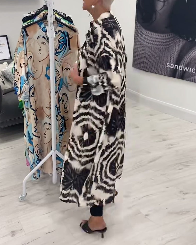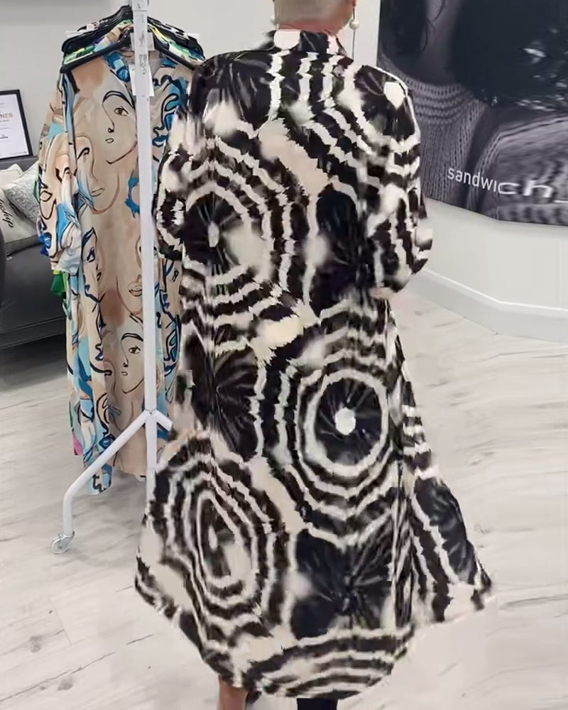 Orlisse – Lang frakke med retrokontrastprint for en trendy og sofistikeret stil