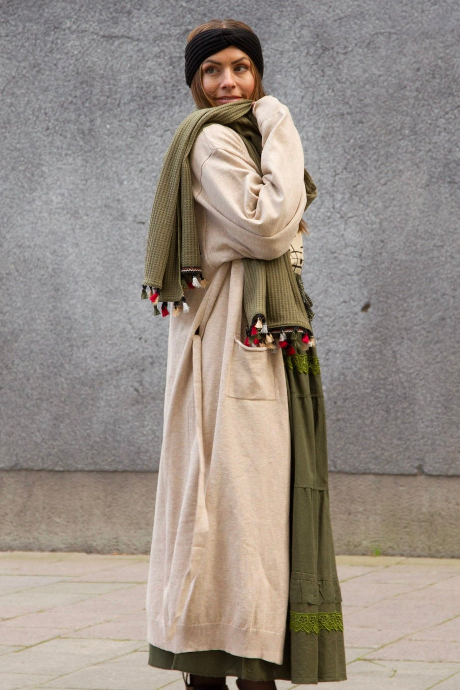 Lyrissa Beige Cardigan – Versatile Knitted Cardigan that Can Be Worn as a Dress for Women