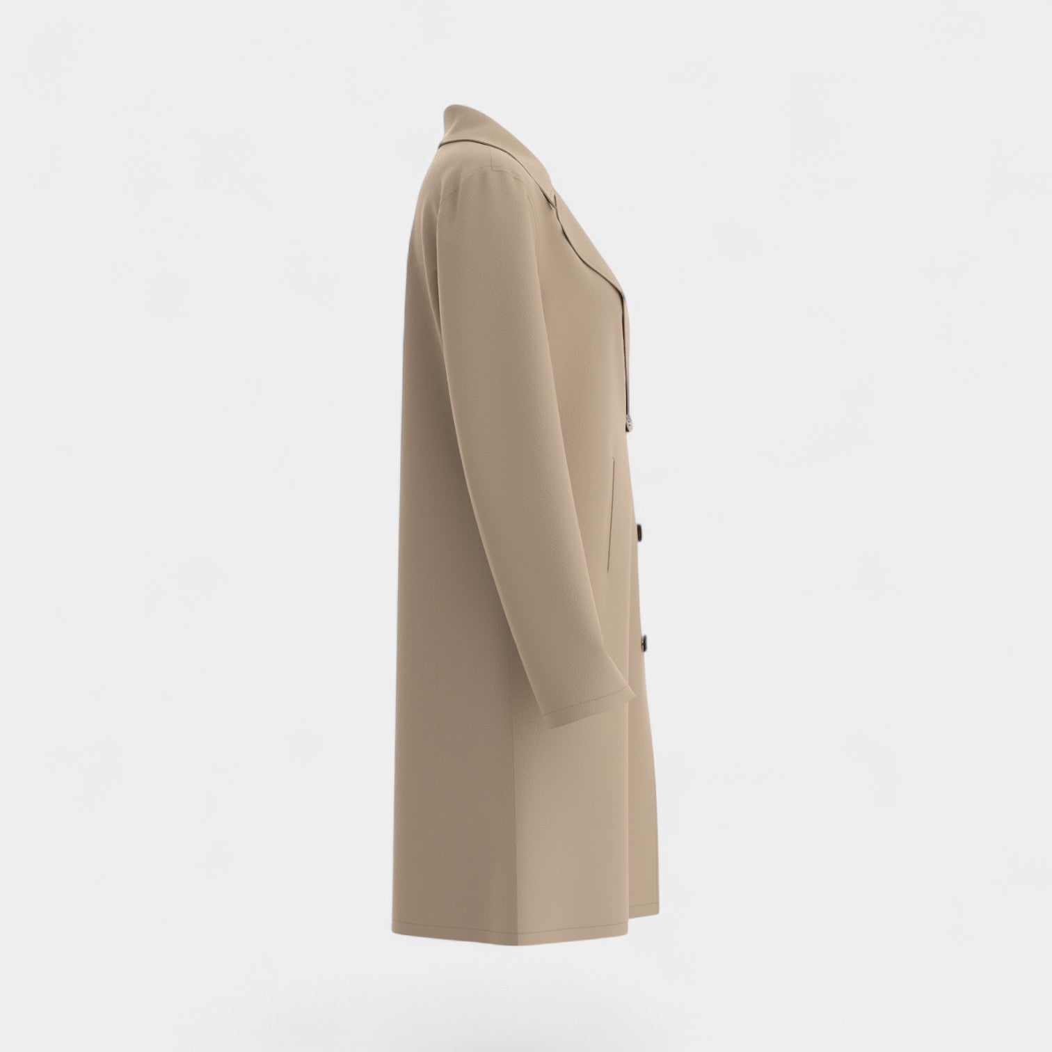 An elegant and versatile spring coat that can easily be worn over both casual and work clothes. The single-breasted design and straight silhouette provide a timeless look that works season after season.