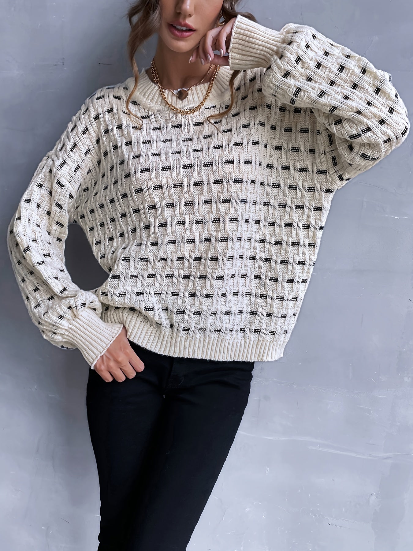 Karin Vintage Färgblock Tröja – En retrochic stickad tröja som kombinerar komfort och tidlös stil.