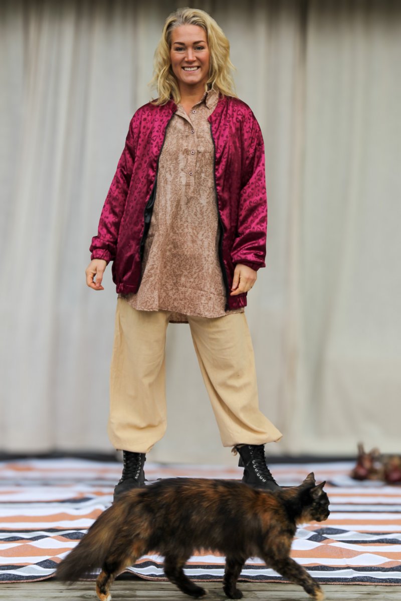 Denna vinröda leopardmönstrade bomberjacka kombinerar glansigt material med en djärv design för en unik look. Den är både bekväm och stilfull, med praktiska fickor och elastiska muddar för perfekt passform. Perfekt att bära som vardagsplagg eller för att lyfta en mer uppklädd outfit.