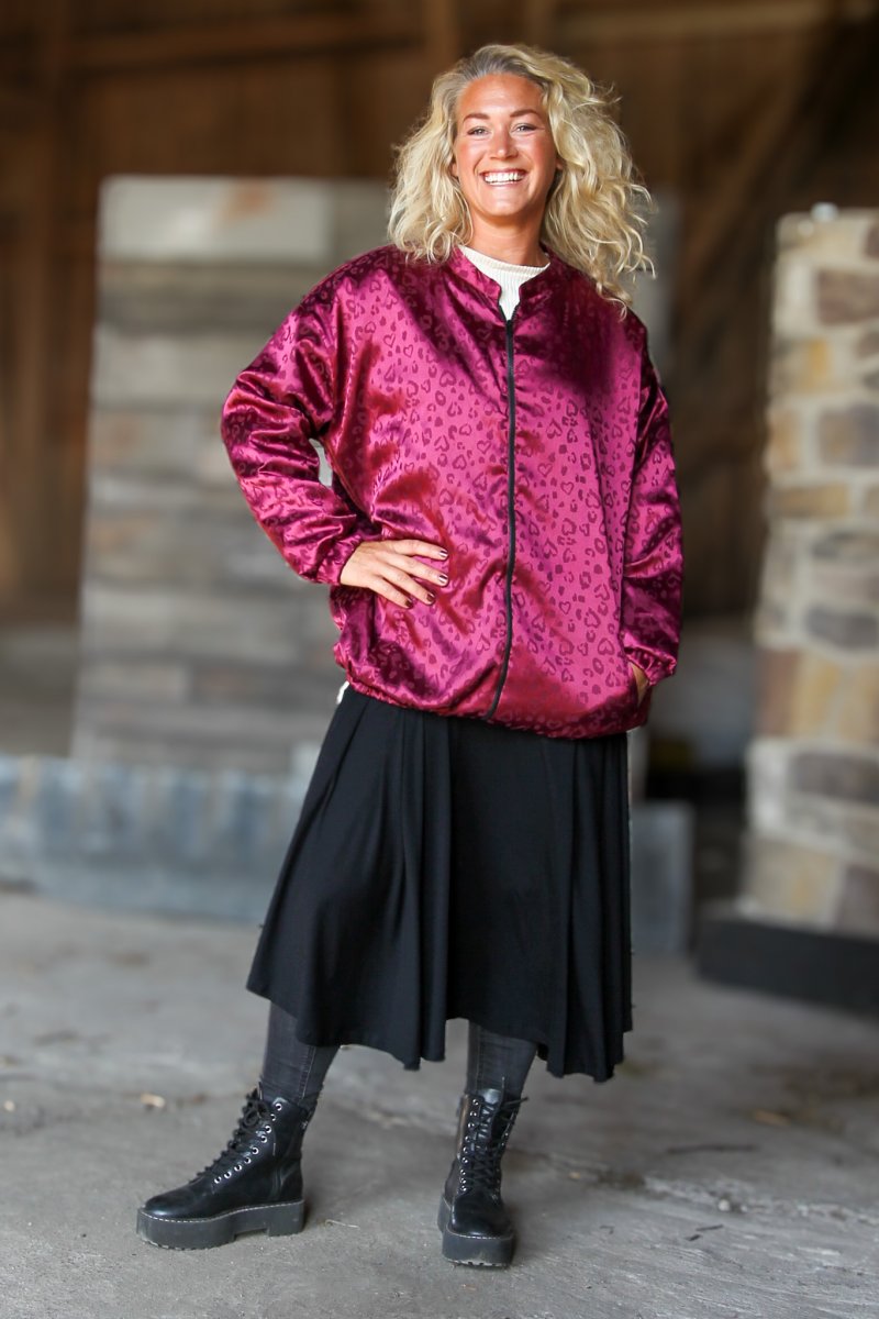 Valindra Vinröd Leopardmönstrad Jacka – Stilren och Trendig Bomberjacka för Dam