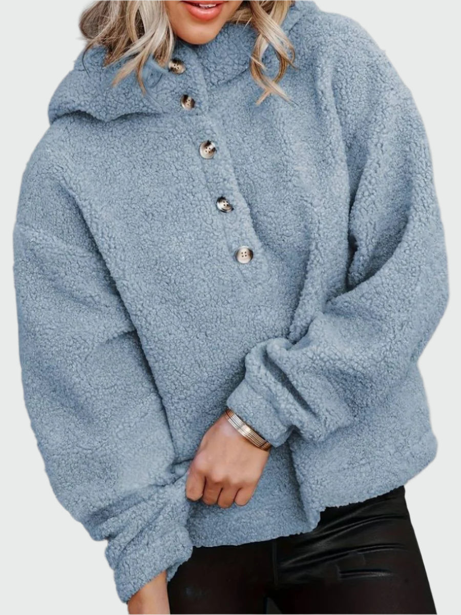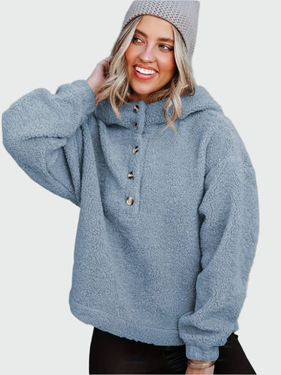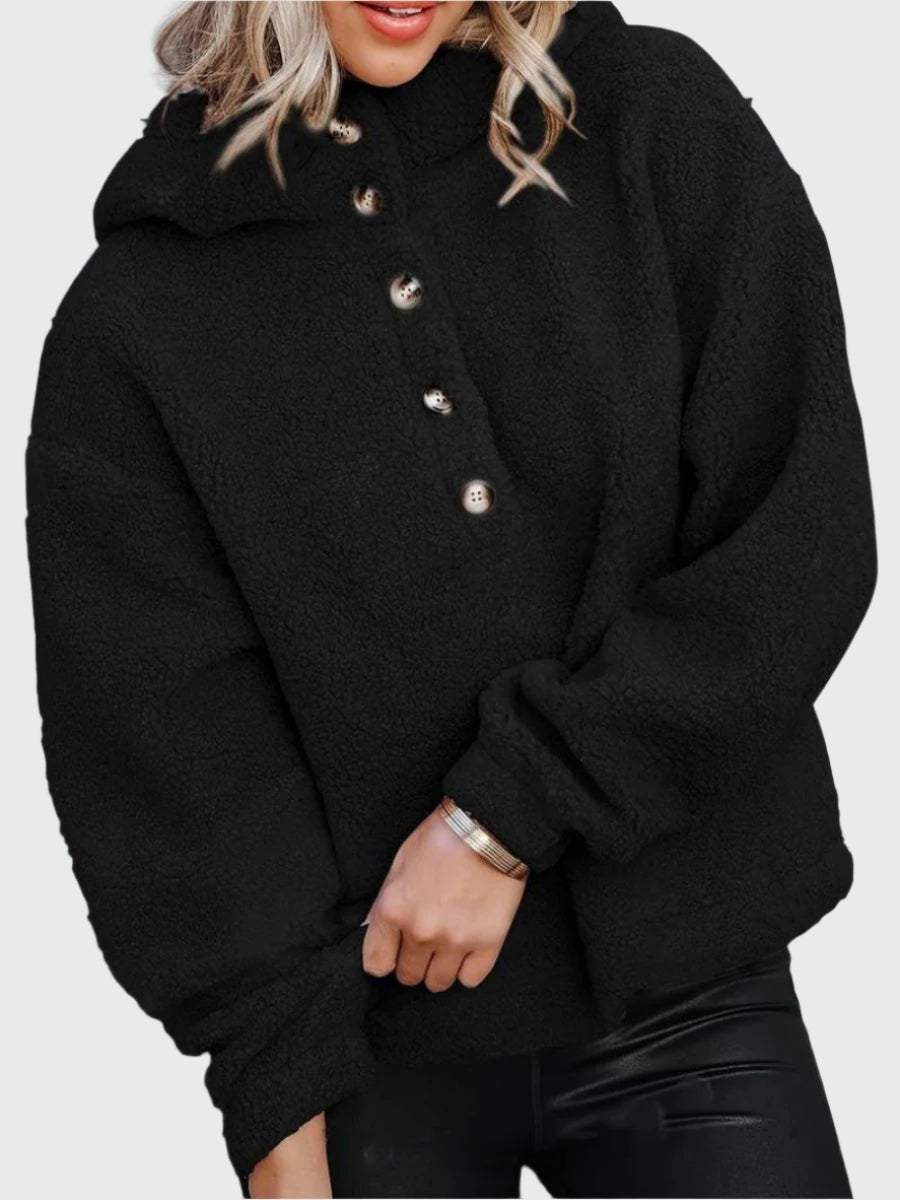 Vionette Dam Mjuk Huvtröja – Stilfull med Knappdetaljer för Komfort och Modern Stil