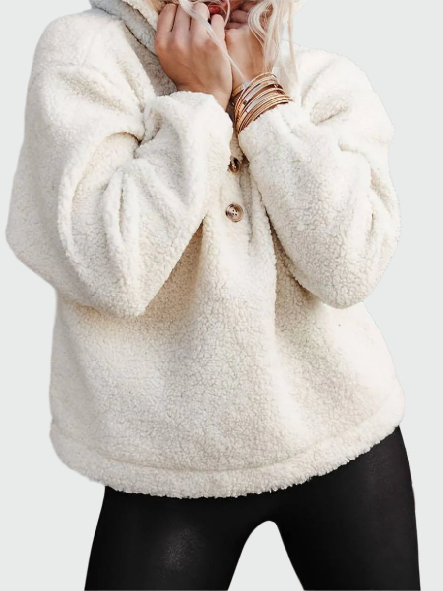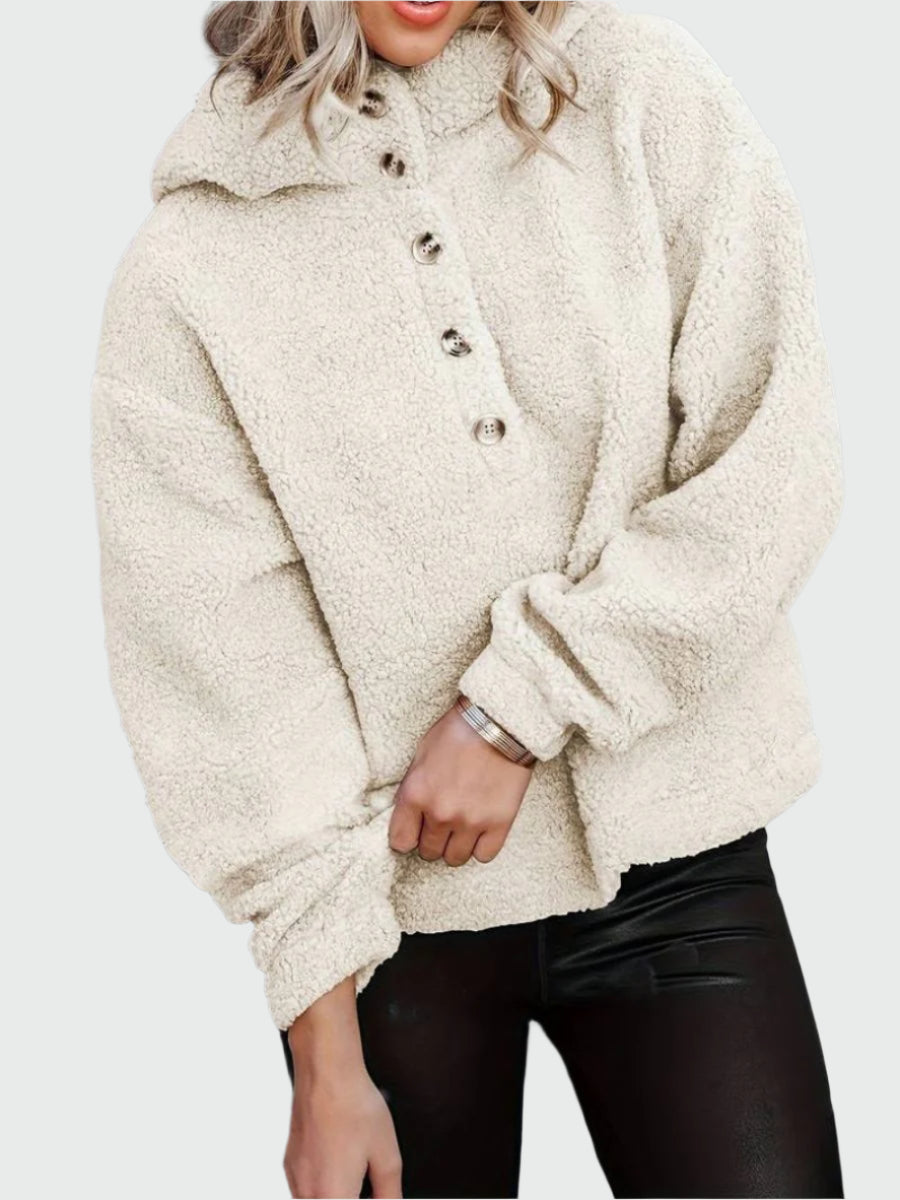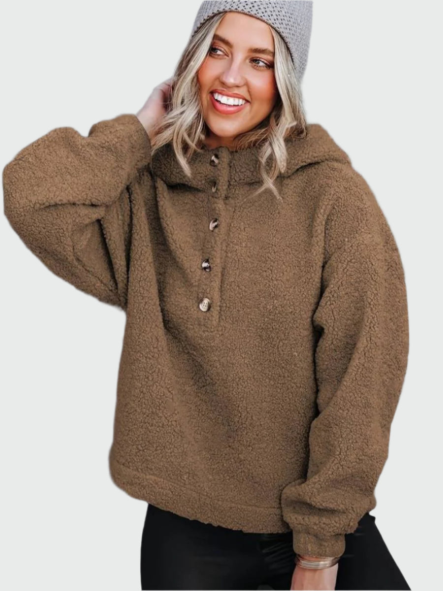 Vionette Dam Mjuk Huvtröja – Stilfull med Knappdetaljer för Komfort och Modern Stil