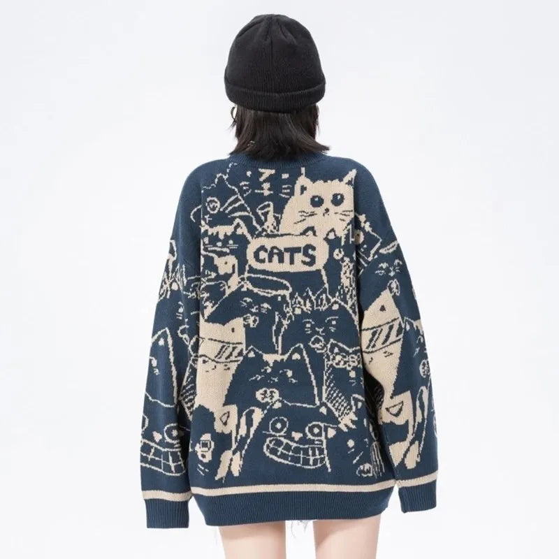 Yvette – Mjuk Stickad Damtröja med Gulligt Kattmotiv för Vardag och Casual Look